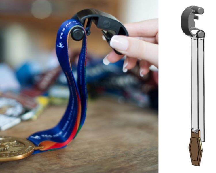 Once installed on the hanger, the medal is ready to be placed on a display.